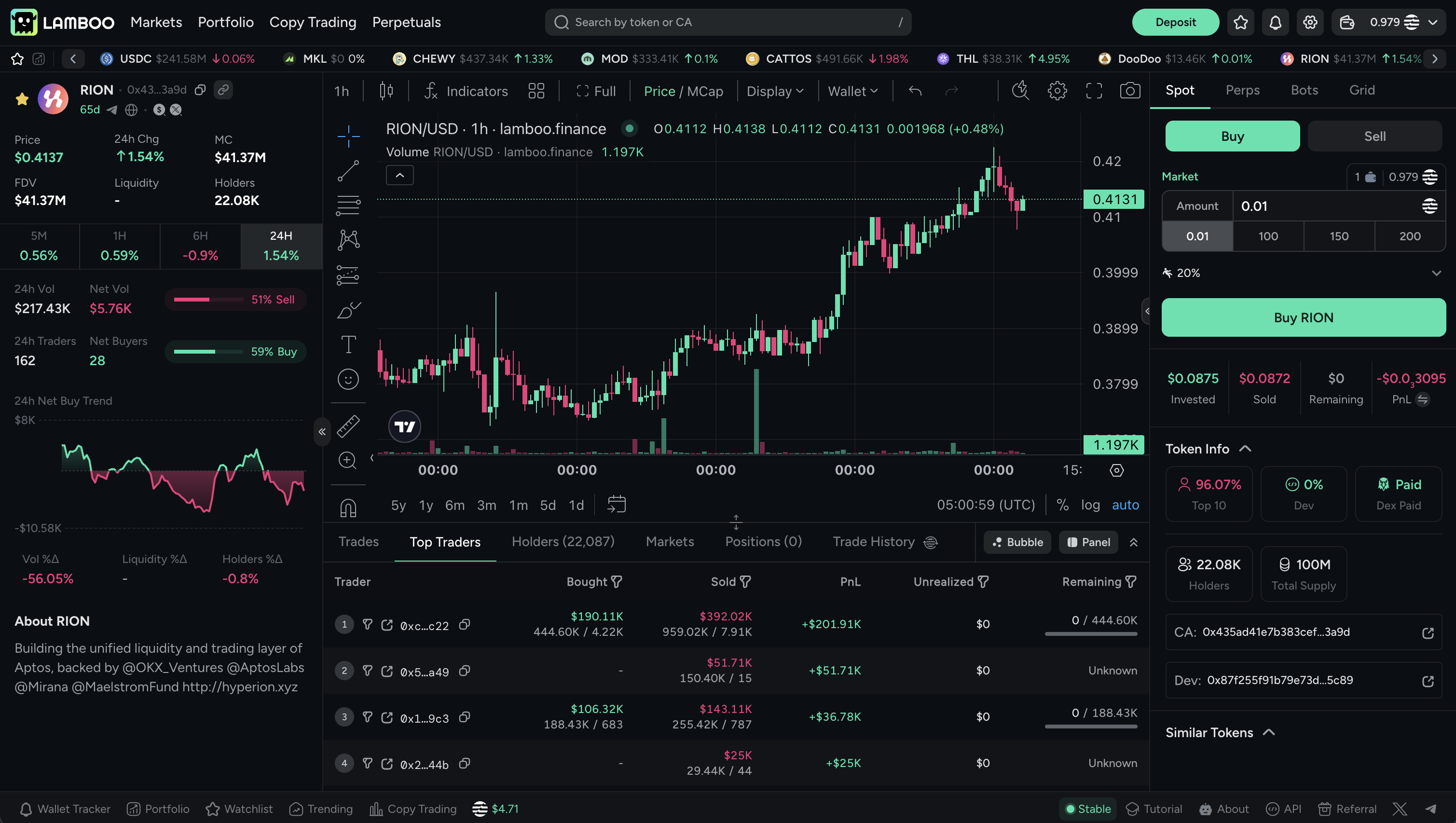 Open Lamboo, type in the token, and you’re ready to trade in seconds.